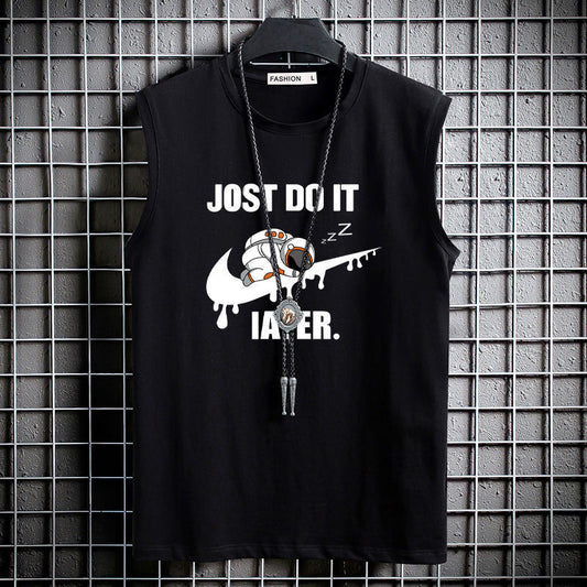 Summer Hong Kong Vest Male Ins Student Personality Sleeveless Trend Loose T-Shirt Round Needle Macent Sports Ball