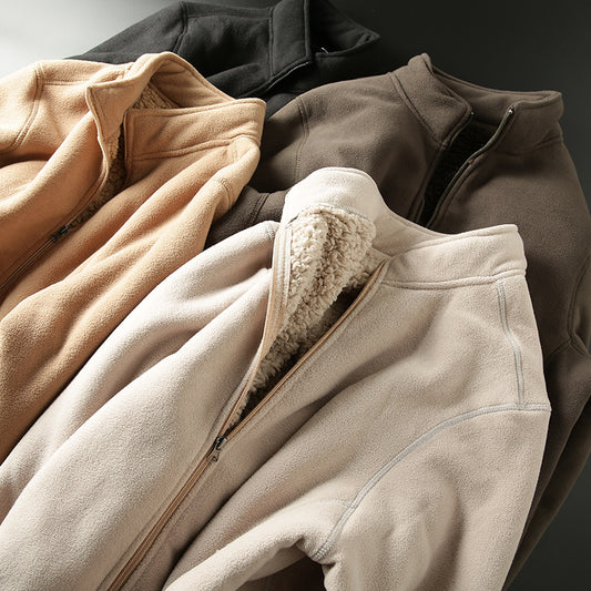 Fried chicken warm island country double composite velvet! Autumn and winter men's granule anti-sheep lamb warm jacket coat