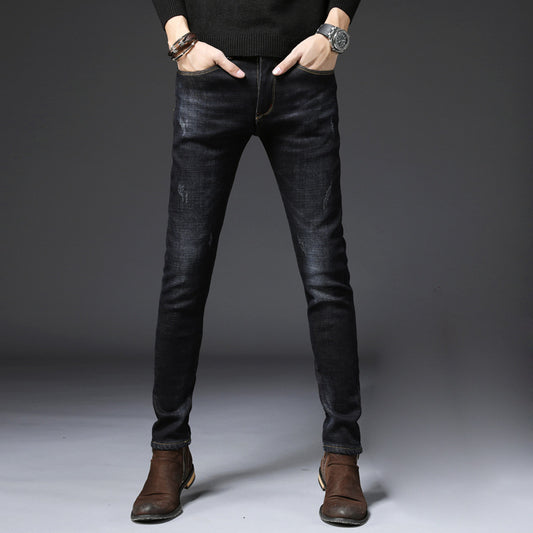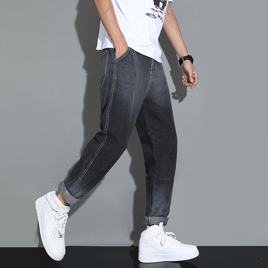New jeans men's elastic spring and autumn casual trousers repair small foot pants men's Korean version of the trend