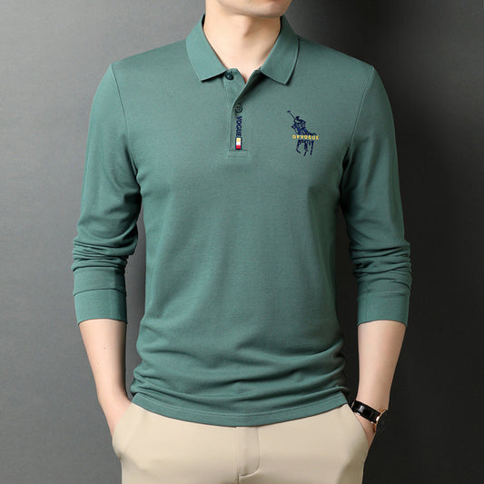 2021 autumn new cotton POLO shirt male business gentleman embroidery lapel breathable long-sleeved T-shirt male wholesale
