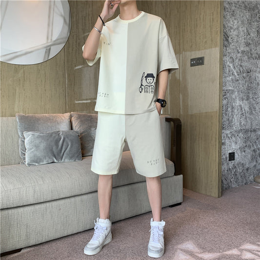 2021 men's summer short-sleeved men's daily sports teen Korean version of T-shirt shorts men's Korean casual set men