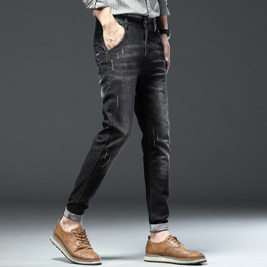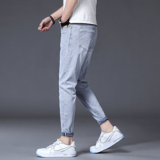 2021 spring and autumn new jeans men's small feet Korean version of the trend men's fashion casual tide stretch trousers