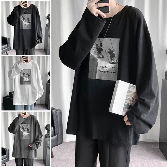 Long-sleeved T-shirt men's loose spring and autumn port wind sweater INS trend Simple Besong College Fengchun large size top