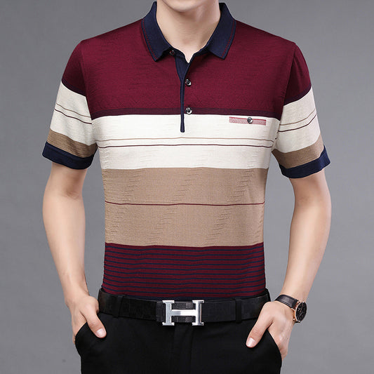 Ice silk half sleeves T-shirt men's father dress loose casual top 2021 summer thin section short-sleeved middle-aged men's clothing