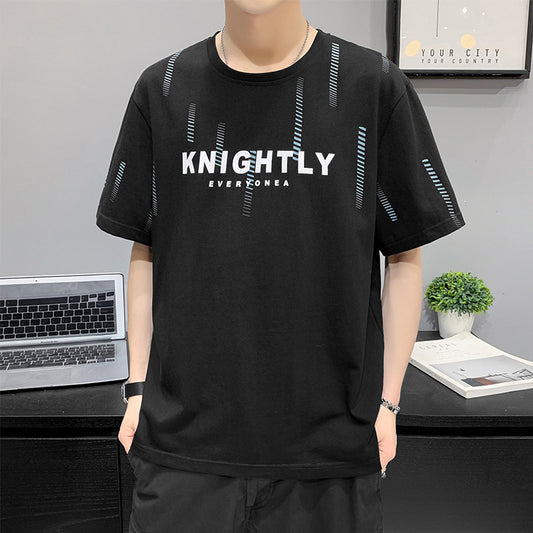 Summer men's ice silk short sleeve T-shirt bottoming shirt loose trend half sleeve clothes print round leader shirt men's clothing