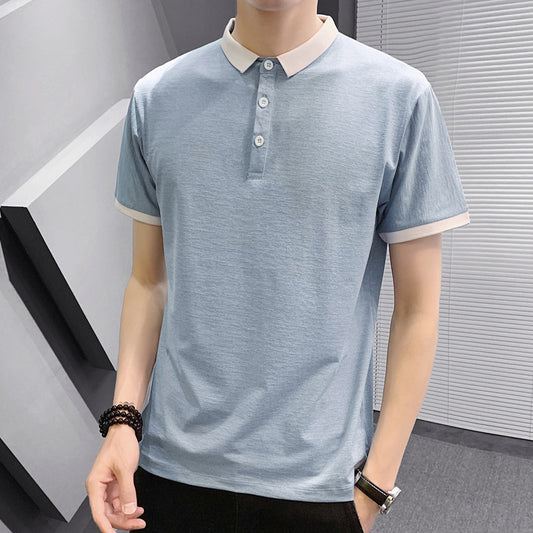 Men's short-sleeved t-shirt male 2021 summer new lapel polo shirt custom clothes men's solid color casual men's T-shirt