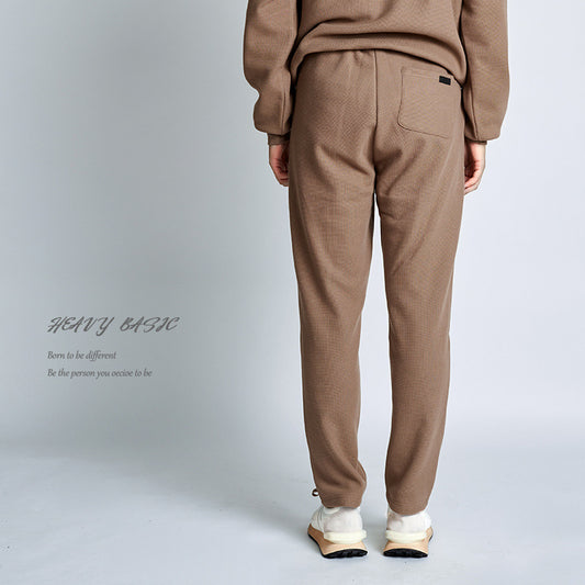 2021 autumn deep coffee trousers solid color medium waist cotton casual spot micro-eullet brown ordinary Warc husband
