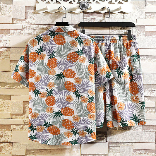 Cross-border 2021 Summer Foreign Trade Men's Short Sleeve Shirt Set Men's Beach Print Shirt Shorts Leisure Two Sets