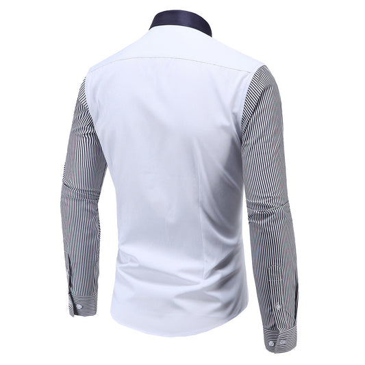 2021 autumn new fashion foreign trade men's large size splicing long-sleeved shirt slim striped tape sleeve shirt
