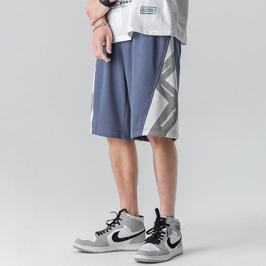 Men's imitation cotton casual shorts 2021 summer Hong Kong style color matching rope five pants trend teen loose pumping