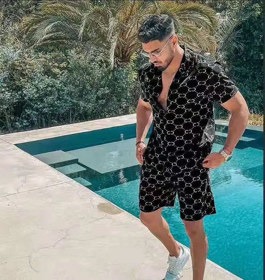 Fashion Men Hawaiian Beach Suit Summer Short Sleeve Button Printing Casual Green Daily Beach Shorts Streetwear Mens Clothes