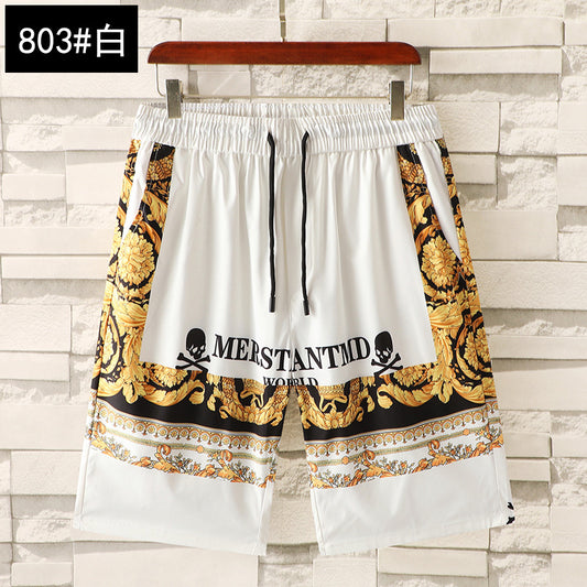 Summer new casual pants men's goods trend straight loose ice silk shorts tide card thin five pants beach pants