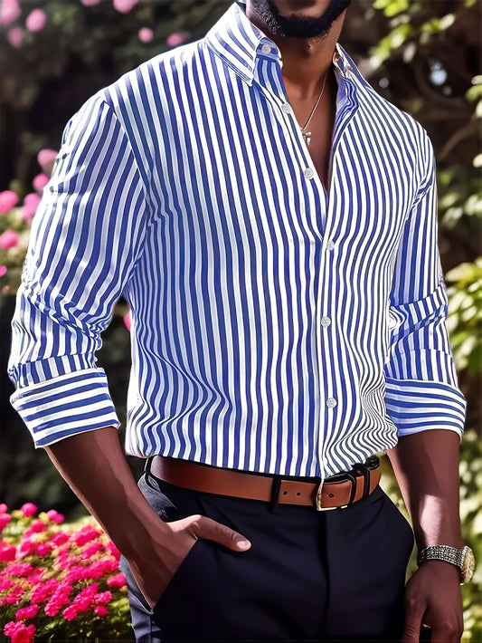 Camicia Business Casual Uomo, Manica Lunga a Righe per Tutte le Stagioni: Primavera, Estate, Autunno e Inverno, Ideale per Look Casual e Comodo, Vacanze, Uso Quotidiano e Altro, 100% Poliestere, Lavabile in Lavatrice, Non Lavabile a Secco. WCY9195