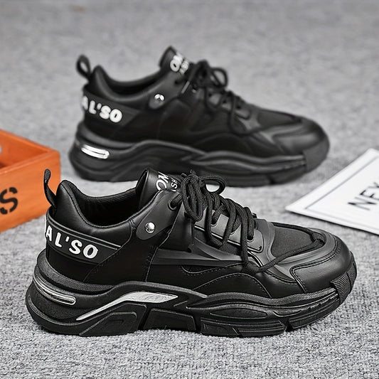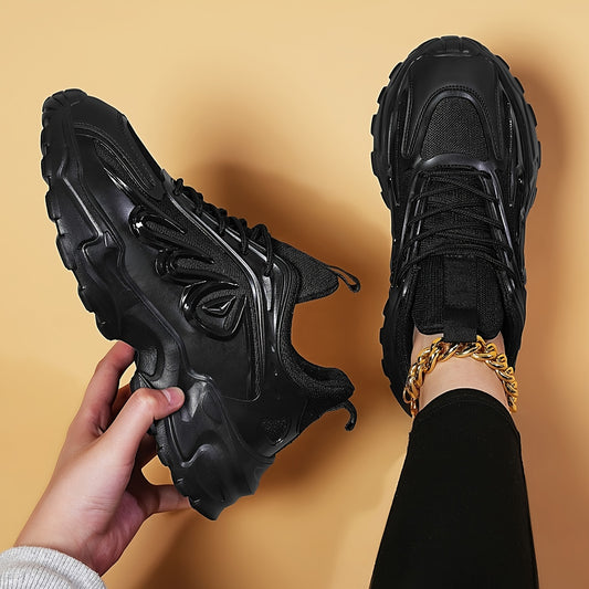 Men's Solid Chunky Shoes, Comfy Non Slip Lace Up Soft Sole Sneakers For Men's Outdoor Activities