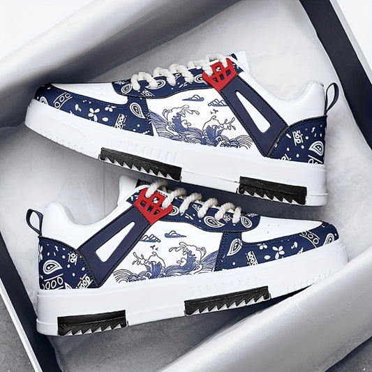 DAWSRi Men's Trendy Low Top Street Style Skate Shoes, Comfy Non Slip Casual Lace Up Soft Sole Sneakers For Men's Outdoor Activities