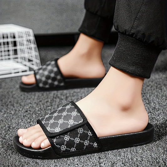 Men's Fashion Slides, Casual Non Slip Slippers With PU Leather Uppers, Open Toe Beach Shoes For Indoor Outdoor Walking