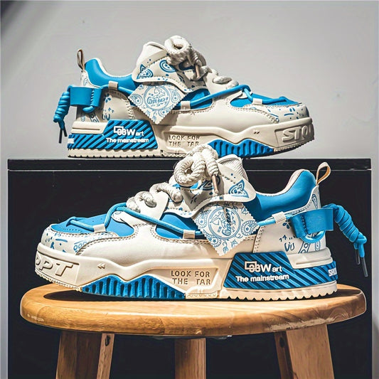 Men's Vintage Old School Style Chunky Shoes, Comfy Non Slip Lace Up Casual Sneakers For Men's Outdoor Activities
