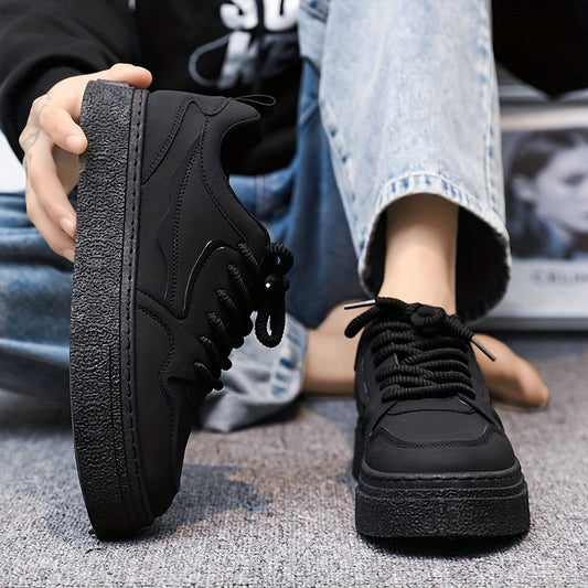 Men's Trendy Solid Skate Shoes, Comfy Non Slip Casual Lace Up Sneakers For Men's Outdoor Activities