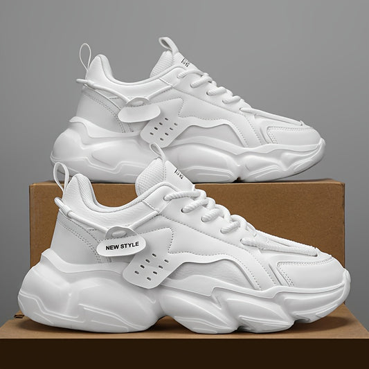 Men's Trendy Solid Chunky Shoes, Comfy Non Slip Casual Lace Up Soft Sole Sneakers For Men's Outdoor Activities