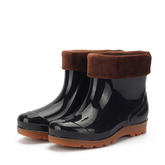 Slip-slip low tube breathable plus cotton warm rain shoes men's rain boots car wash water shoes work fishing rubber shoe camouflage boots
