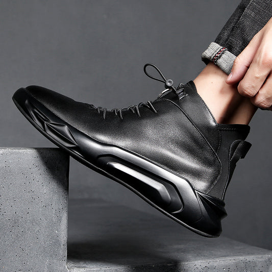 Leather men's shoes 2020 autumn and winter new high help British hundred sports shoes casual leather shoes Korean version of boots boots