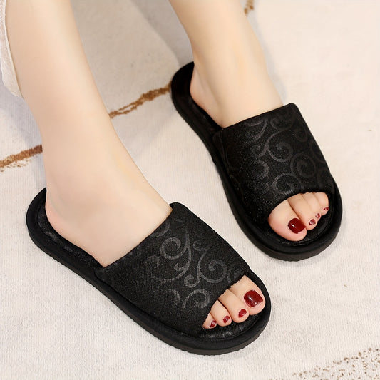 Women's Classic Open Toe Slippers, Vintage Style Soft Sole House Slides, Comfortable Cozy Indoor Footwear