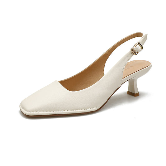 Classic Style Square Head Kitten Heel French Toe Cap Slingback Sandals