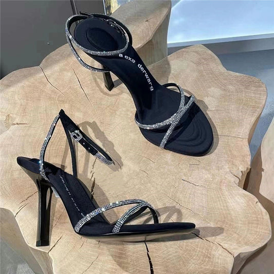 Spring And Summer Stiletto Sexy Open Toe Buckle Rhinestone Sandals