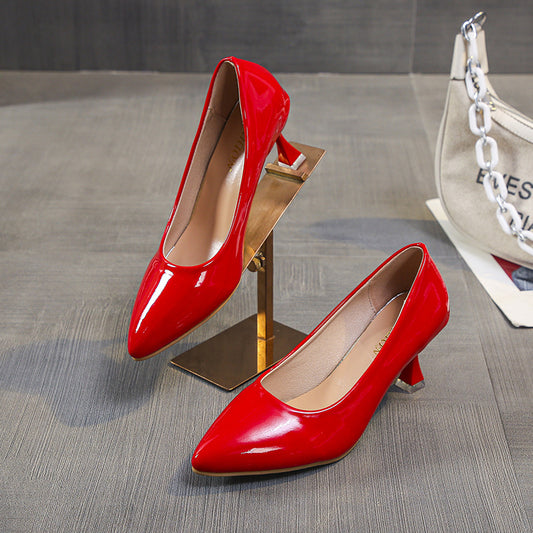 Shallow Mouth Pointed High Heels Sexy Patent Leather Stilettos