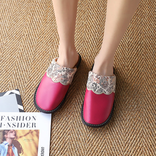 Home leather slippers autumn and winter anti-skating tendons, men and women, European floor slippers couple warm cotton slippers wholesale