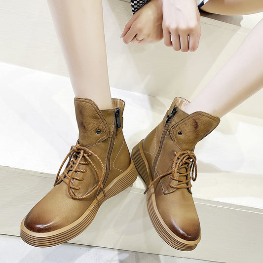 First layer leather Martin boots female leather 2021 autumn and winter new European and American wind boots round head fashion women's boots wholesale