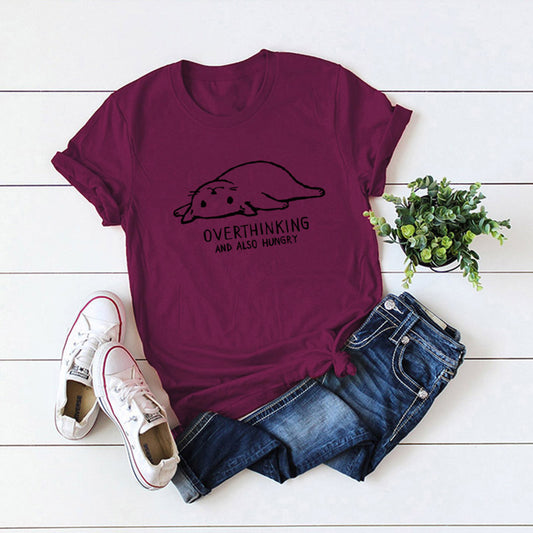 Spot goods! Wish eBay hot European and American casual cute women's t-shirt easy cat round neck short-sleeved female t