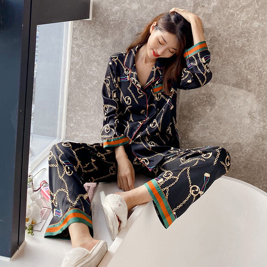 INS foreign trade explosion models simulation silk pajamas ladies 2020 spring lapel cardigan home service long-sleeved ice silk pajamas