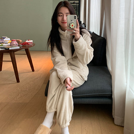 Nan Tao coral fleece suit can be worn outside couple cardigan sweater autumn and winter Korean pajamas two-piece home service women