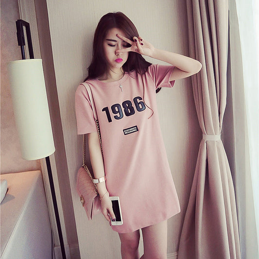 Women's 2011 summer Korean version of the new tide long short-sleeved T-shirt print round neck loose large size dress female