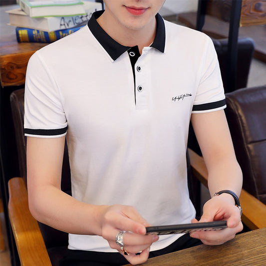 Summer short-sleeved T-shirt men's trend lapel polo shirt men's cotton ice silk T-shirt has collar clothes new half-sleeved shirt