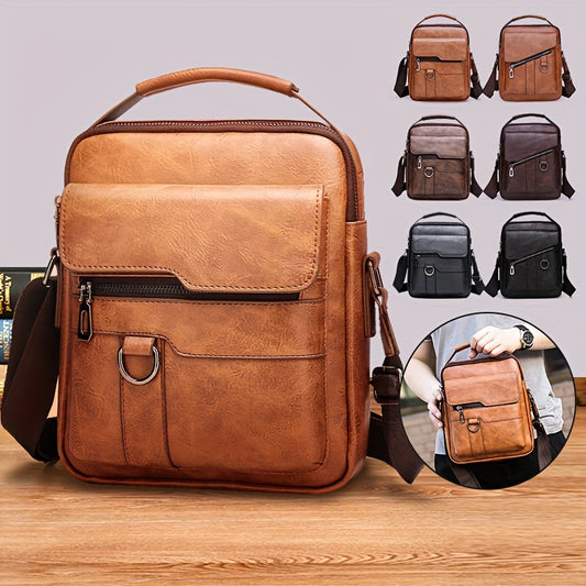 1pc Men's PU Leather Shoulder Bag, Large Capacity Casual Messenger Bag, Simple Business Trendy Sling Bag