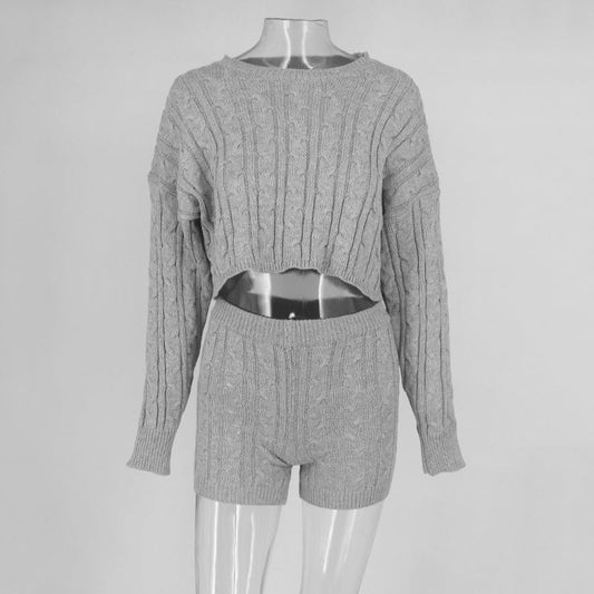 2 Piece Set Women Long Sleeve Crop Tops Bodycon