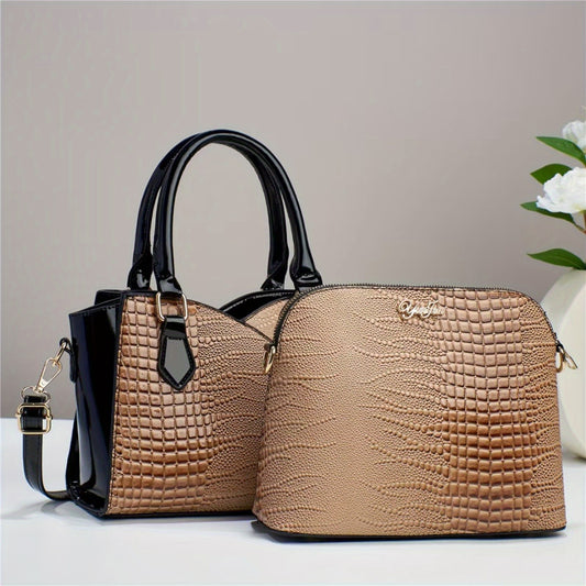 2 Pcs Elegant Crocodile Pattern Bag Set, Lightweight Classic Shoulder Bag With Square Pouch