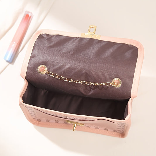 1pc Borsa a mano in peluche stampata vintage per ragazze, carina borsa a tracolla con catena in metallo, borsa mobile casual per appuntamenti, scelta ideale per regali
