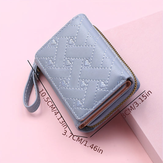 1pc Men's Fashion Embroidered Love Coin Purse, Trifold Card Holder, Multi Card Slots Wallet