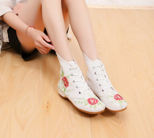 18 autumn and winter new embroidered cloth shoes national wind short boots women's old Beijing increased cloth shoes women's boots one generation