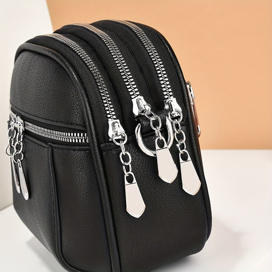 Retro Rivet Decor Crossbody Bag, Soft PU Leather Shoulder Bag, Women's Multi Zipper Messenger Bag