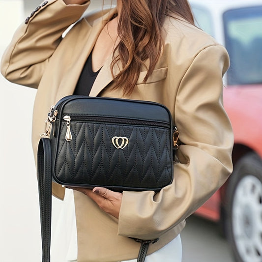 Trendy Quilted Crossbody Bag, Classic PU Shoulder Phone Bag, Women's Casual Fashion Handbag & Purse