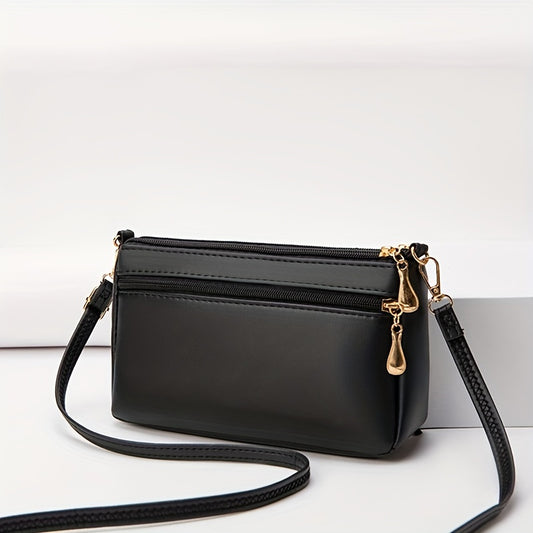 Solid Color Zipper Dome Bag, PU Leather Shoulder Bag, Multi-Pockets Fashion Crossbody Bag