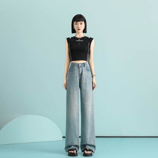 Lyocell Jeans Thin Super Soft Texture Mopping High Waist Wide Leg Jeans