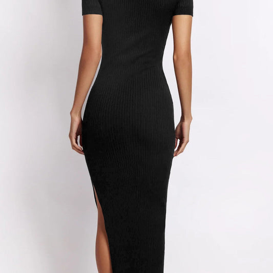 Decorative Button Split Ribbed Sleeveless Knit Dress