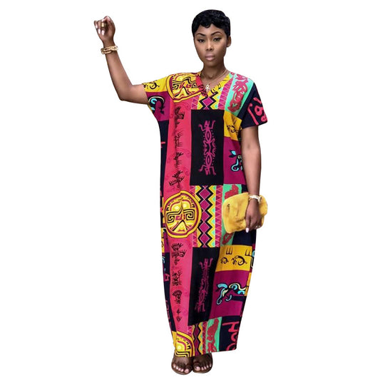 K9866 2020 Summer Winter New Independent Station Amazon Long African Ethnic Style Printed Loose Dress