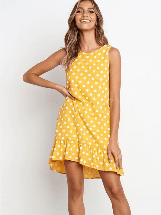 Women Polka Dot Chiffon Sleeveless Beach Mini Casual Yellow Sundress