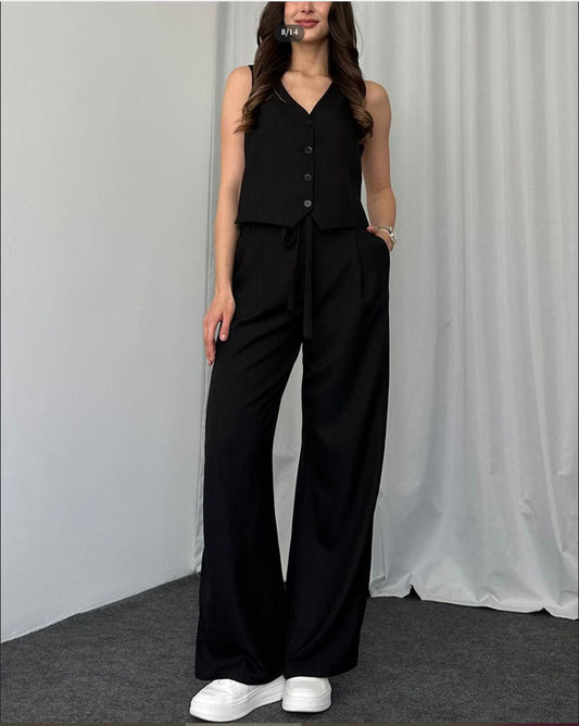 Women's Solid Color Casual Vest Two-piece Set